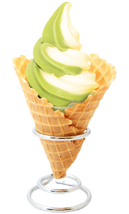 Our homemade matcha & vanilla soft serve and a crispy cone that we make fresh every day